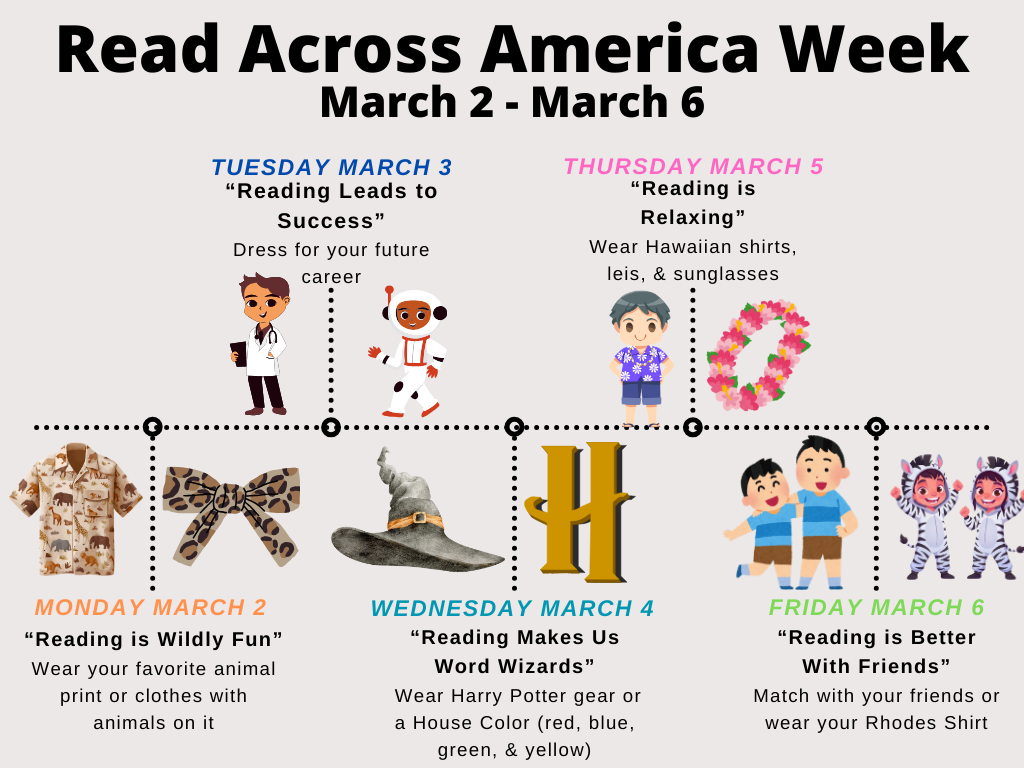 Good afternoon Rhodes community,Save the date! Next week we have holiday spirit days created by Student Council for our Scholars.Monday: "Snowman Monday" - Wear Blue and WhiteTuesday: "Tinsel Tuesd...